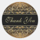 Design classique doux avec or sur un damas noir et un texte au centre.