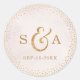Parties scintillant de flamme rose or main lettering calligraphie monogramme design et points d'or confetti sur pastel blush aquarelle arrière - plan, joli effet de parties scintillant d'or rose faux métallique, moderne, chic, élégant et classe, parfait pour mariage vintage ou mariage de printemps. Personnalisez votre autocollant monogrammed pour ajouter une touche personnelle à votre mariage ! Voir toutes les pièces correspondantes dans cette collection de calligraphie de parties scintillant d'or rose rousse ci-dessous.