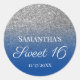 Sticker Rond Parties scintillant Ombre bleu argent personnalisé