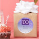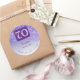 Sticker Rond Parties scintillant pourpre tombante, 70e annivers