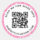 Elégant étiquette de code QR rond avec un texte circulaire et une parties scintillant rose imprimée (simulée dans l'illustration). Suivez-nous sur Instagram : @business.perfectlycustom et Facebook : @businessstationery pour les produits, nouvelles et ventes liés aux entreprises