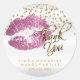 Sticker Rond Parties scintillant rose bâton sur blanc - Merci