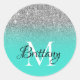 Sticker Rond Parties scintillant Turquoise Argent Ombre Monogra