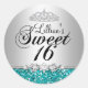 Turquoise & Silver Sweet 16 Anniversaire autocollant. Design élégant en diamant tiara. Remarque : Toutes les images plates, Ils n'ont pas de vrais bijoux ou de parties scintillant!