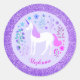 Sticker Rond Parties scintillant Unicorne rose violet personnal