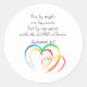 "Pas par la force, ni par la puissance, mais par mon esprit, dit l'Éternel des armées." Zacharie 4:6. Faites cette belle déclaration de foi avec ce texte d'écriture accentué de coeurs colorés qui se chevauchent.