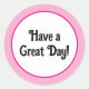 Autocollants personnalisés pour une excellente journée. Autocollants mignons à coller sur vos enveloppes pour souhaiter une bonne journée à quelqu'un ! Fond rose avec du texte en bulles noir.