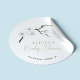 Délicat motif de fleur chic élégant printemps ou jardin d'été bleu clair bébé douche auto-collant personnalisé avec script de calligraphie verte sage.
