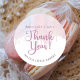 Seal treat bags and bakery boxes with a round pastel watercolor “Thank You” label—soft pink, gentle drip details, and elegant script that feels gift-ready 🎀