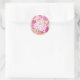 Sticker Rond Pastel Pink Halloween Ghost with Flowers and Pumpk