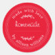 Des produits de boulangerie rustiques faits maison ou un autocollant à la confiture avec le texte fait maison, fait avec amour et votre nom dans la typographie moderne sur un arrière - plan rouge vif. Ajoutez simplement votre nom au étiquette. Vous pouvez écrire les noms des produits sur les autocollants lorsque les produits sont fabriqués. Conçu exclusivement pour vous par Happy Dolphin Studio. Si vous avez besoin d'aide ou de produits correspondants, veuillez nous contacter à happydolphinstudio@outlook.com .