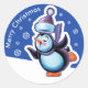 Patinage rond de pingouin d'autocollant de bleu de cobalt de Noël et tout autre Snowfolk.