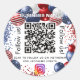 Fond blanc. Décoré de ballons de couleur patriotique en bleu rouge et blanc. Le bleu et le rouge brillent. Personnalisez et ajoutez votre nom d'entreprise, votre propre code qr à votre compte Instagram et un texte. Avec le texte : Suivez-nous !