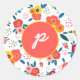Sticker Rond Pavot Floral Motif Corail Script Monogramme