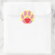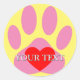 Sticker Rond Pawprint chien rose Nom personnalisé