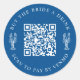 Procurez des boissons gratuites à la mariée lors de sa soirée ou son week-end de bachelorette avec ces autocollants de code QR personnalisés en bleu et blanc méditerranéen nautique. Le design comprend deux lignes de texte personnalisé (illustrées avec "payez un verre à la mariée" et "scannez pour payer avec Venmo") en lettrage blanc, avec un code QR personnalisable au centre, accentué par deux illustrations de homard. Ajoutez le lien vers votre service ou application de paiement préféré, et le code QR sera mis à jour afin que les autres participants à la fête (ou les admirateurs) puissent scanner pour payer !