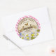 Sticker Rond Pays Daisies Rose En vichy Baby shower chèque