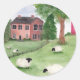 Sticker Rond Paysage de ferme à moutons