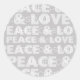Autocollants ronds avec un arrière - plan gris avec texte blanc qui lit Paix & Amour avec une superposition qui lit Joyeux Noël dans un texte blanc plus petit. Nous avons aussi des cartes photos de vacances, des postes et des étiquettes de adresse correspondants !
