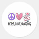 Infirmière Design avec la citation "Paix, Amour, Infirmière". Je suis fière d'être infirmière. Nous sommes fiers de nos infirmières. Les infirmières sont nos héros quotidiens.
