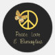 Grand symbole de paix jaune qui est reconnu dans le monde entier, avec couvert de papillon jaune sur l'arrière - plan noir. Le texte "Peace love & papterflies" est personnalisable