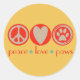 Sticker Rond Peace Love Paws