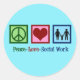 Peace Love Social Work présent. Un joli cadeau de Noël de travailleur social avec une famille tenant la main à côté d'un signe de paix et d'un coeur. Un design sympa pour les services sociaux.
