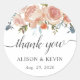 Sticker Rond Peach Rustique Floral Calligraphie Script Merci
