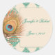 Sticker Rond Peacock Feather sur Teal Marocain Enveloppe Seal