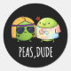 Sticker Rond Peas Dude Funny Hippie Pea Pun Dark BG