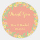Sticker Rond Pêche avec Merci à bordure fleurie vert jaune