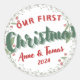 Celebra tu primera Navidad juntos con este hermoso pegatina personalizado "Nuestro Primer Navidad" de 2024. Diseñado con un elegante motivo de corona de hojas y bayas navideñas, esta pegatina incluye los nombres personalizados de la pareja y el año, lo que lo convierte en un recuerdo atemporal que puedes atesorar durante muchos años. Personaliza tu pegatina único con los nombres que desees y marca el inicio de una tradición especial para tu familia.
