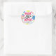Rappelez-vous votre amusante soirée paint and sip pour l'enterrement de vie de jeune fille et ajoutez une touche colorée spéciale aux sacs de bienvenue, aux faveurs, aux sacs de friandises et plus encore pour l'enterrement de vie de jeune fille avec cet autocollant de thème artistique. Personnalisez simplement avec le nom de la mariée pour une touche personnelle amusante. Le design présente la typographie "paint sip repeat" ainsi que des éclaboussures de peinture complètes avec des éclaboussures de peinture rose, jaune et bleue ainsi qu'une palette de peinture peinte à la main, un verre et des pinceaux.
