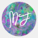 Sticker Rond Peinture Monogramme violet et pour bleu