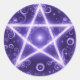 Cet autocollant fantaisiste présente une impression d'aquarelle pentacle/pentagramme violet et blanc.