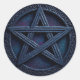 Cet autocollant pentacle présente un design d'inspiration celtique dans un gris bleu avec des taches d'impression de peinture à l'huile violette.