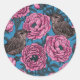 Sticker Rond Peonies and wrens on blue