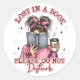 Illustration charmante montrant une femme avec ses cheveux en chignon, son visage est couvert par le livre qu'elle lit. Elle tient le livre et une tasse de café. Le texte coloré dit : "Perdu dans un livre s'il vous plaît ne pas déranger". Ce design est disponible sur une grande variété de produits.