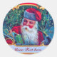 STICKER ROND PÈRE NOËL AVEC ENFANT DANS LA NEIGE D'HIVER