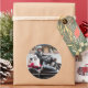 Photo amusante d'un flic de moto avec le Père Noël dans le sidecar sonnant sa cloche de Noël.