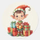 Père Noël Elfe de Noël avec cadeaux Sticker rond classique