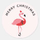 Sticker Rond Père Noël Flamant rose rose Noël
