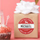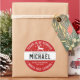 Un autocollant de Noël amusant Père Noël Workshop du pôle Nord pour emballer vos cadeaux de Noël à vos enfants. Sticker présente les mots, Flown in by Reindeer and North Pole Express. Personnalisez-le avec le nom de votre enfant pour leurs cadeaux de Noël. Conçu pour vous par Blackberry Boulevard.