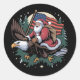 Sticker Rond Père Noël Riding Eagle USA Drapeau Noël