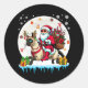 Sticker Rond Père Noël Riding Reindeer Birman Chat Noël Proprié