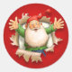 Un autocollant fantaisiste coloré illustrant l'illustration d'un Père Noël ancien qui déborde de papier pour souhaiter à tous un joyeux Noël.
