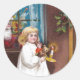 Sticker Rond Père Noël visite par fenêtre Noël millésimé
