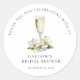 Perles Élégantes et Prosecco Enterrement de Vie de Jeune Fille Autocollant Rond Classique - Un ajout charmant à votre célébration d'Enterrement de Vie de Jeune Fille. Notre modèle d'autocollant présente un verre de Prosecco pétillant orné de fleurs blanches et de perles cultivées. L'autocollant présente également un remerciement spécial à vos invités d'enterrement de vie de jeune fille, le nom de la future mariée et la date de la célébration. L'autocollant fait partie d'une collection et se coordonne parfaitement avec les invitations d'Enterrement de Vie de Jeune Fille et d'autres articles de la collection.