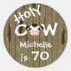 Sticker Rond Personalisé Funny Holy Cow 70th Birthday Humorisor