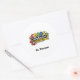 Featuring colorful school-themed graphics like a yellow bus, apple, and school supplies, this sticker captures the energy of teaching.